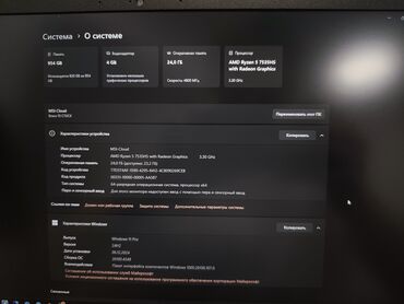 Ноутбук, MSI, 16 ГБ ОЗУ, AMD Ryzen 7, 17.3 ", Б/у, Игровой, память NVMe SSD