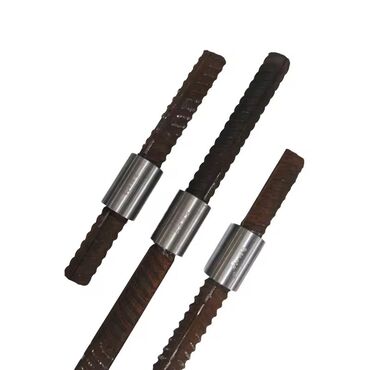 - Используются совместно с арматурными стержнями с нарезанными концами (пример стыка показан на фото).