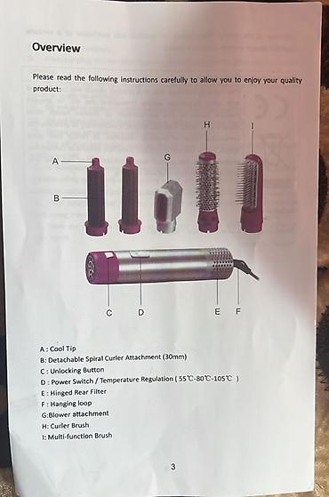 - 2 насадки-щётки: круглая термощётка с металлическим корпусом и щётка-гребень для выпрямления/приподнимания;