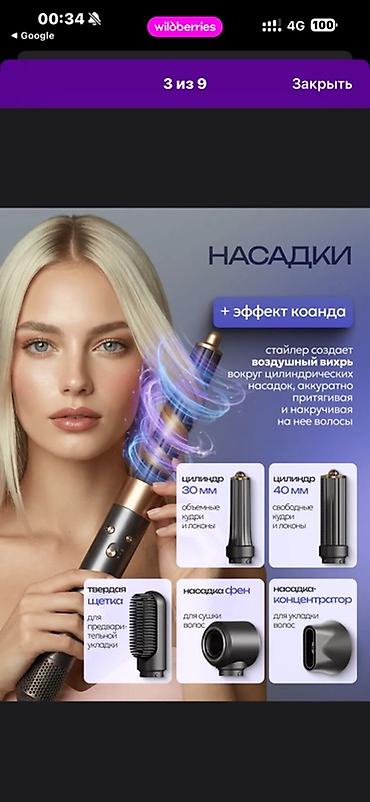 - Эффект Коанда: создаёт воздушный вихрь вокруг цилиндрических насадок, аккуратно притягивая и накручивая волосы.