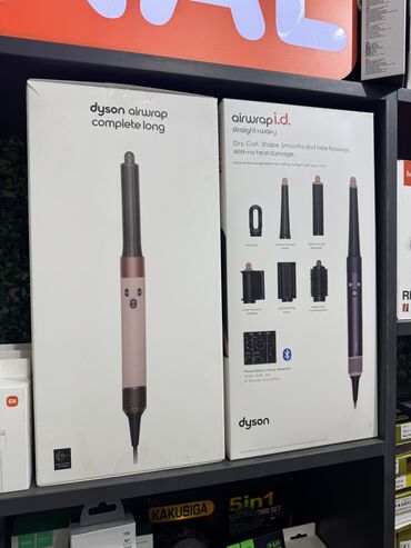 Dyson Airwrap — многофункциональный стайлер для сушки и укладки без перегрева. На витрине представлены комплекты: