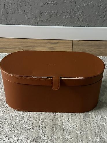- фирменный овальный кофр из экокожи карамельного цвета с магнитной застёжкой.