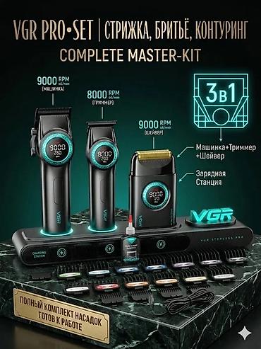 Профессиональный барбер‑комплект VGR STEPLESS PRO / VGR PRO SET — полнофункциональный мастер‑набор 4 в 1 для стрижки, бритья, контуринга и укладки.