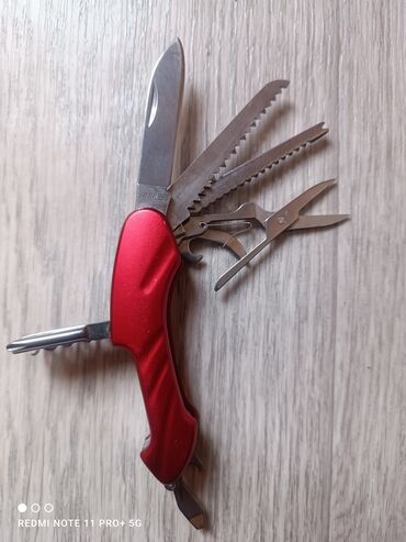 Мультитул-нож Zipower, красный корпус. Инструменты: - Основное лезвие