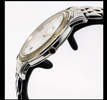 Материал корпуса - хирургическая нержавеющая сталь 316L двойного цвета, частичным с покрытие жёлтого золота 18 карат 750 проба и технологией PVD защитой от тускнения и истирания золота