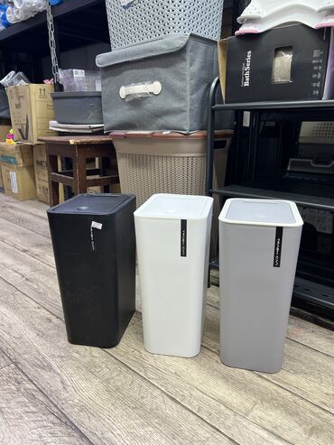 Стильные мусорные ведра, представленных в черном, белом и сером цветах, идеально впишутся в любой интерьер. Эти узкие и высокие ведра с прямоугольным сечением оптимальны для небольших пространств, таких как ванные комнаты, туалеты или кухни. Каждое ведро оснащено крышкой для сокрытия содержимого и предотвращения распространения запахов. Они подходят для различных видов мусора и помогут поддерживать порядок в любом помещении.