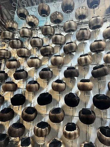 Кыргыз калпак нукура кийизден биринчи эки суроттогулор баасы 1500 сомдон. Андан кийинки торт АК калпактар 100 сомдон