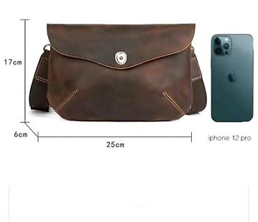 Представляем мужскую наплечную сумку из натуральной кожи, выполненную в насыщенном коричневом цвете. Эта компактная сумка имеет размеры 25 см в длину, 17 см в высоту и 6 см в ширину, что делает ее идеальной для хранения повседневных предметов, таких как кошелек, блокнот, телефон и другие мелочи. Дизайн сумки включает в себя клапан с металлической застежкой-кнопкой и аккуратные белые декоративные швы по углам, добавляющие ей стиля. Прочный плечевой ремень обеспечивает удобство ношения. Отличный выбор для тех, кто ищет функциональный и стильный аксессуар.
