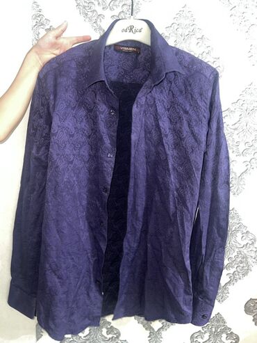 1) Фиолетовая рубашка VISMEN, длинный рукав, отложной воротник. Ткань с жаккардовым/пейсли-рельефом, застёжка на пуговицы, манжеты на пуговицах. Подходит для вечерних образов.