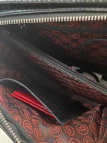 - Внутри: несколько секций, центральный карман на молнии, открытые карманы для телефона/карточек, отдельный карман‑перегородка. Фирменная подкладка с логотипом.