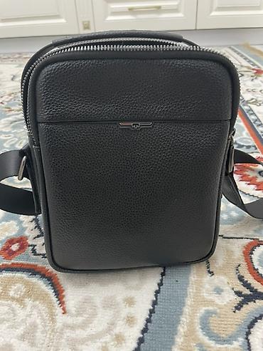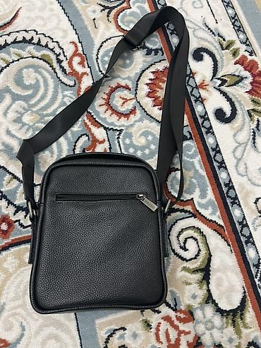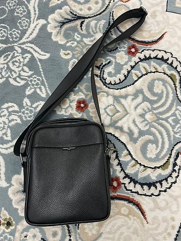 Мужская сумка через плечо из черной зернистой кожи. - Формат