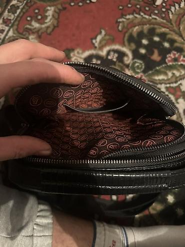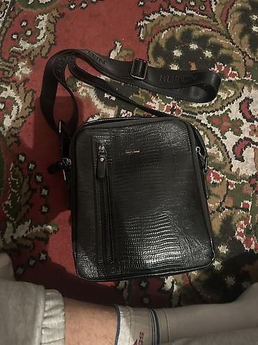 Мужская сумка через плечо - Материал: черная экокожа с тиснением под