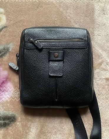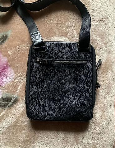 Мужская сумка через плечо из черной фактурной кожи.