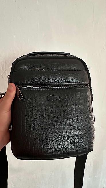 Мужская сумка через плечо, компактная, чёрная. - Материал: фактурная