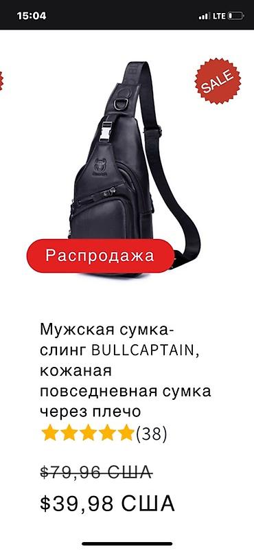 На одном из фото указано: «Мужская сумка‑слинг BULLCAPTAIN, кожаная повседневная сумка через плечо». Цена, указанная на изображении: $39,98 США.