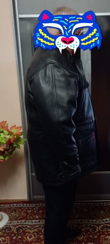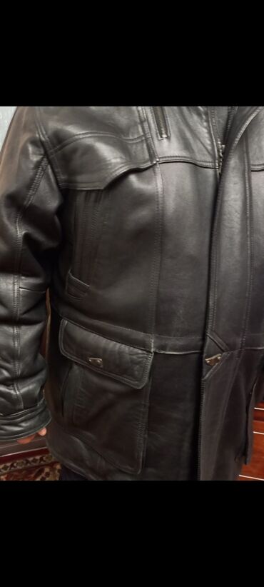 Мужская удлинённая кожаная куртка (полупальто), черного цвета.