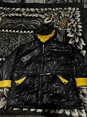 - Цвет: чёрный с контрастной жёлтой подкладкой и элементами (манжеты, внутренности карманов, капюшон).