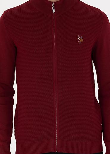 Мужская вязаная кофта на молнии, бордовая.