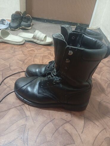 Берцы кожаные, классические черные.