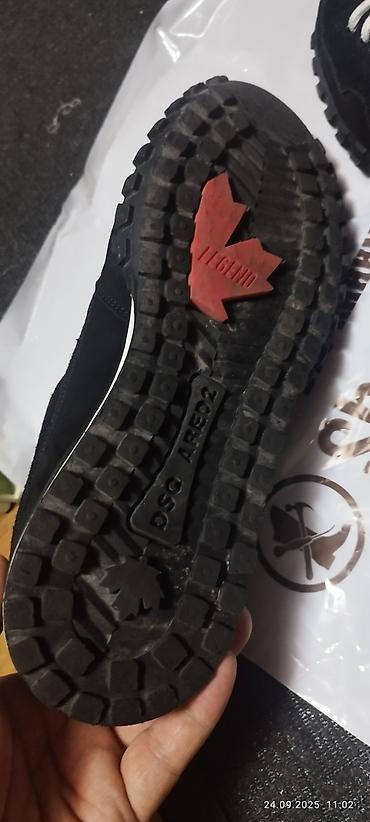 - Протектор: глубокий «тракторный» рисунок для надежного сцепления; на подошве фирменные элементы — красный кленовый лист и надписи DSG ARED2/DSQUARED2