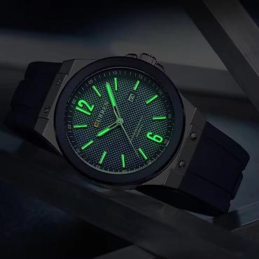 Стильные часы на каждый день: удобный мягкий ремешок, читаемый циферблат, дата и светонакопительные элементы для видимости в темноте. Подойдут к повседневным и спортивным образам.
