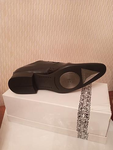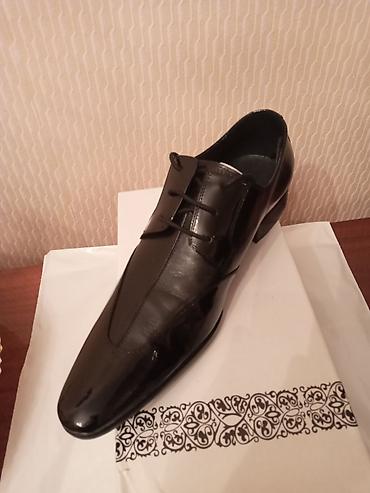 Классические мужские туфли Оксфорды черного цвета. Модель отличает закрытая шнуровка, что придает им строгий и элегантный вид. Изготовлены из гладкой кожи. Носили всего два раза. Брали за 6000 сомов