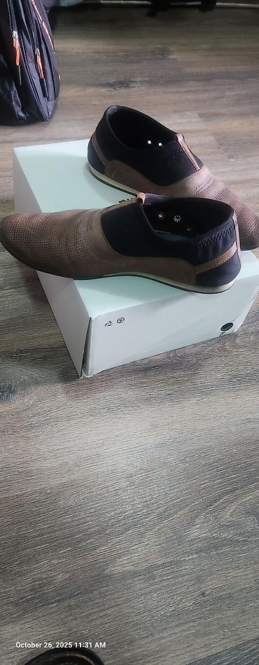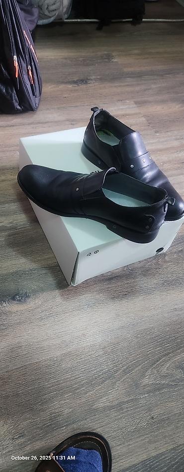 Туфли мужской, 44 45 размер . 1 жолу кийилген. Турецкий. 5000 ге алгам. чон келип калгандыктан 2000 сомго сатам. баары ичи тышы кожа