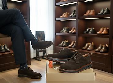 Элегантное сочетание классического брогового дизайна и современной кроссовочной амортизации для ежедневного комфорта. Цвет и фактура замши подчеркивают строгий, но неформальный характер пары.