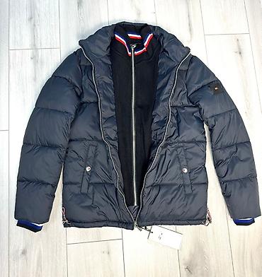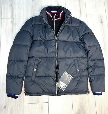 - Tommy Hilfiger: стёганый крой, фирменный мини-логотип на груди, бирка на молнии. Центральная молния, два глубоких боковых кармана, утяжка капюшона, манжеты с кнопками.