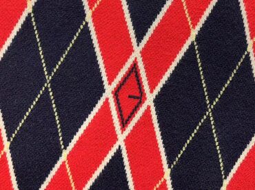 - Цветовая гамма: темно-синий, красный и светлый бежевый; диагональная «ромбовая» раскладка с контрастными тонкими линиями