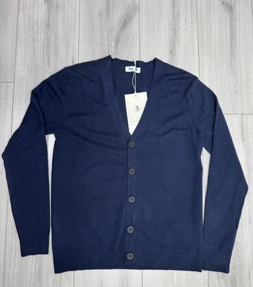 Кардиган мужской/унисекс, темно‑синий (черный). - Фасон: oversize, свободная посадка. - Застежка: на пуговицы спереди (4 пуговицы). - Вырез: V‑образный. - Рукава: длинные. - Карманы: два накладных ...