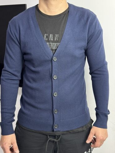 Мужской кардиган на пуговицах, темно-синий.