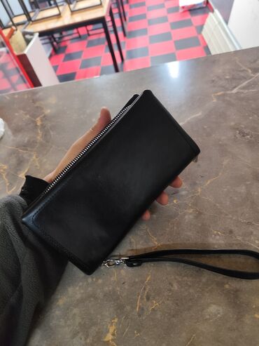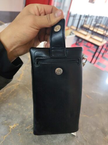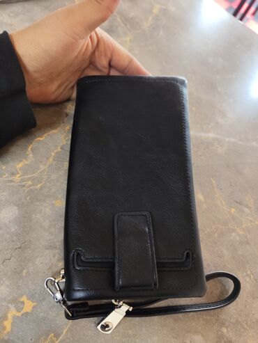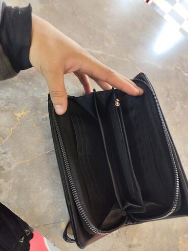 - Внутри: два основных отделения для купюр и смартфона, центральный карман на молнии для монет, множество слотов для карт по бокам.