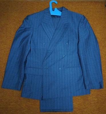 3) Синий костюм в тонкую полоску (пиджак двубортный + брюки)
