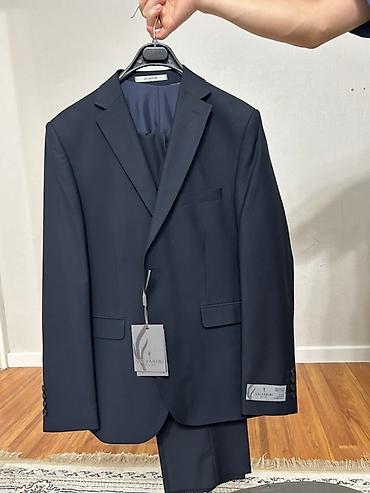 Мужской классический костюм-тройка SALVARINI (жакет, жилет и брюки). - Цвет: темно синий. - Посадка: Slim Fit. - Комплектация: однобортный пиджак с лацканами, нагрудным карманом и двумя клапанными...