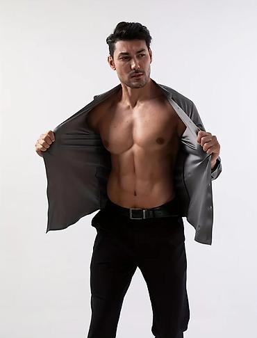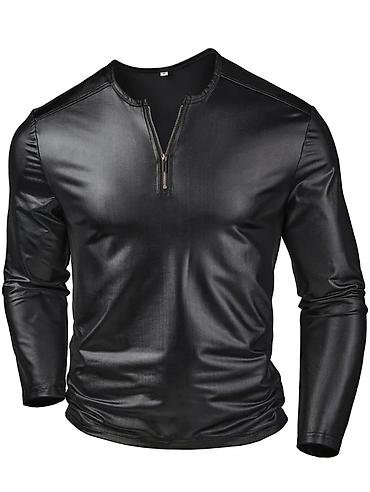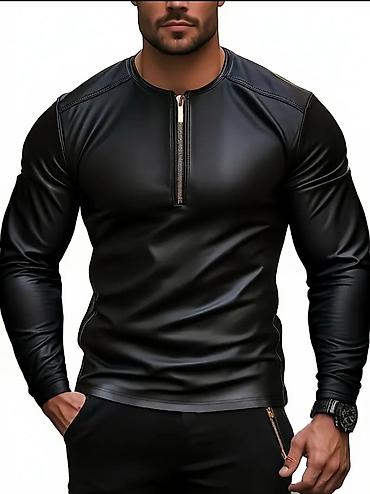 Мужской модный вечерний лонгслив/рубашка из эко-кожи.
