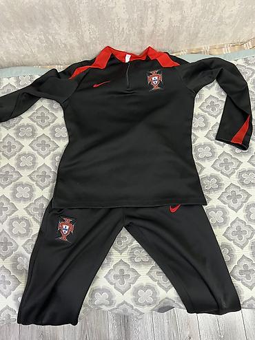 Футбольные комплекты (2 набора) 1) Португалия (реплика формы сборной): - Футболка: красная, короткий рукав, логотип сборной на груди, V-образная горловина с зелёной отделкой, знак Nike. - Шорты: з...