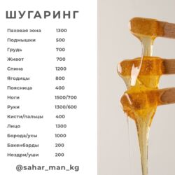 Мужской шугаринг (депиляция сахарной пастой) Зоны и ориентировочные цены, указанные на изображениях: - Пах/бикини — 2000 - Подмышки — 600 - Лицо полностью + маска — 2000 - Усы — 600–800 - Уши — 60...