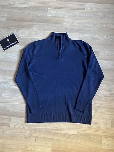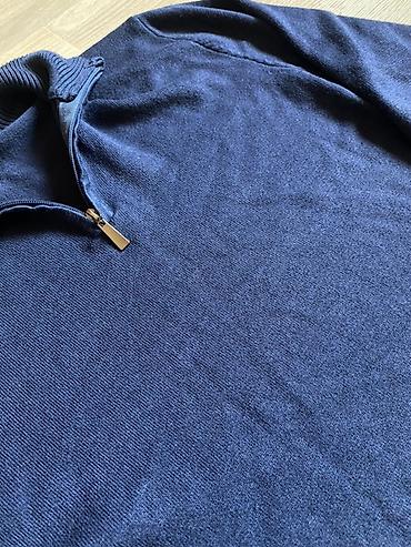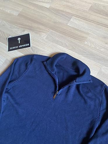 Мужской свитер-поло с молнией (half-zip), темно-синий