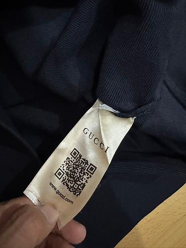 - Бирки: навесной ярлык GUCCI, внутренний сатиновый ярлык с QR‑кодом и адресом сайта, размерная бирка на вороте