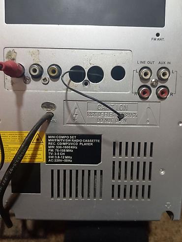 - Разъёмы: на передней панели — PHONES (выход на наушники); на задней — LINE OUT (R/L), AUX IN (R/L), гнездо FM ANT.