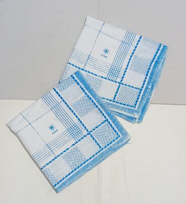 Платки имеют простой дизайн с синими линиями, образующими клетчатый рисунок, и небольшим узором в виде звездочки с надписью "STAR" в одном из квадратов.