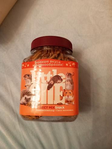 - Лакомство Little One Insect Mix Snack — смесь насекомых для грызунов и ежиков (банка на фото).