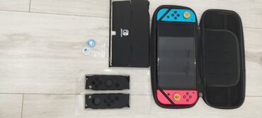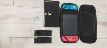 - Жёсткий чехол‑кейс на молнии с логотипом Switch. Внутри — отделение под консоль, резинки‑фиксаторы и сетчатый карман для кабелей/картриджей.- 1000 сомов