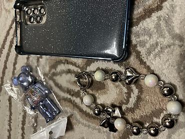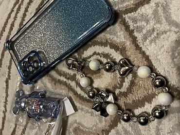 - Съемный брелок-цепочка на чехол: чередующиеся крупные шарики «жемчуг», металлические шары и сердечки, карабинное крепление.