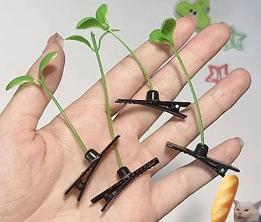 Мини-зажимы с декоративными «ростками» для волос и аксессуаров. - Комплект небольших крокодил-зажимов с гибким зеленым «стеблем» и листочками на конце. - Универсальное применение: укладка и деко...