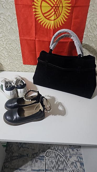 Набор аксессуаров и обуви: 1) Сумка женская, черная, замшевая