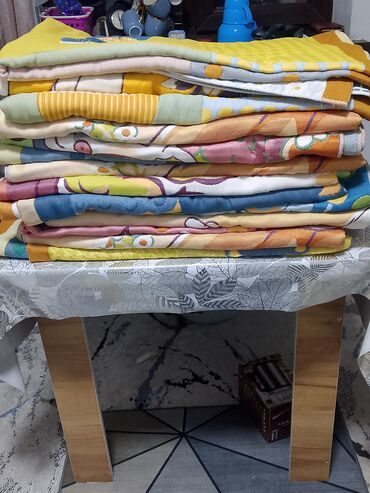 - Дизайн: многоцветные принты с цветами и мультяшными персонажами. Один из пледов — жёлтый с большим рисунком зайки и надписью LOVE, декоративная рамка по краям.