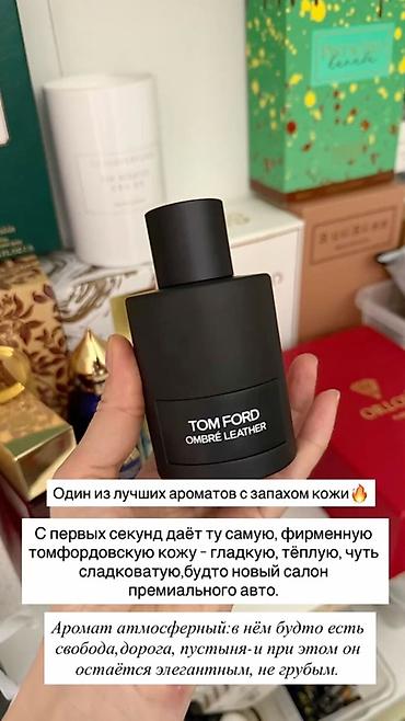 - Tom Ford Ombre Leather — кожаный, тёплый, гладкий, с лёгкой сладостью; атмосферный, с ощущением свободы, дороги и пустыни, при этом элегантный и не грубый.
