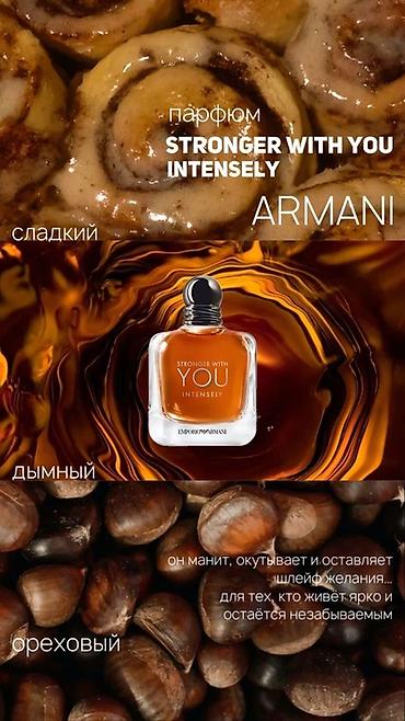 - Emporio Armani Stronger With You Intensely — сладкий, дымный, ореховый аккорд; манящий, окутывающий, оставляет заметный шлейф желания.